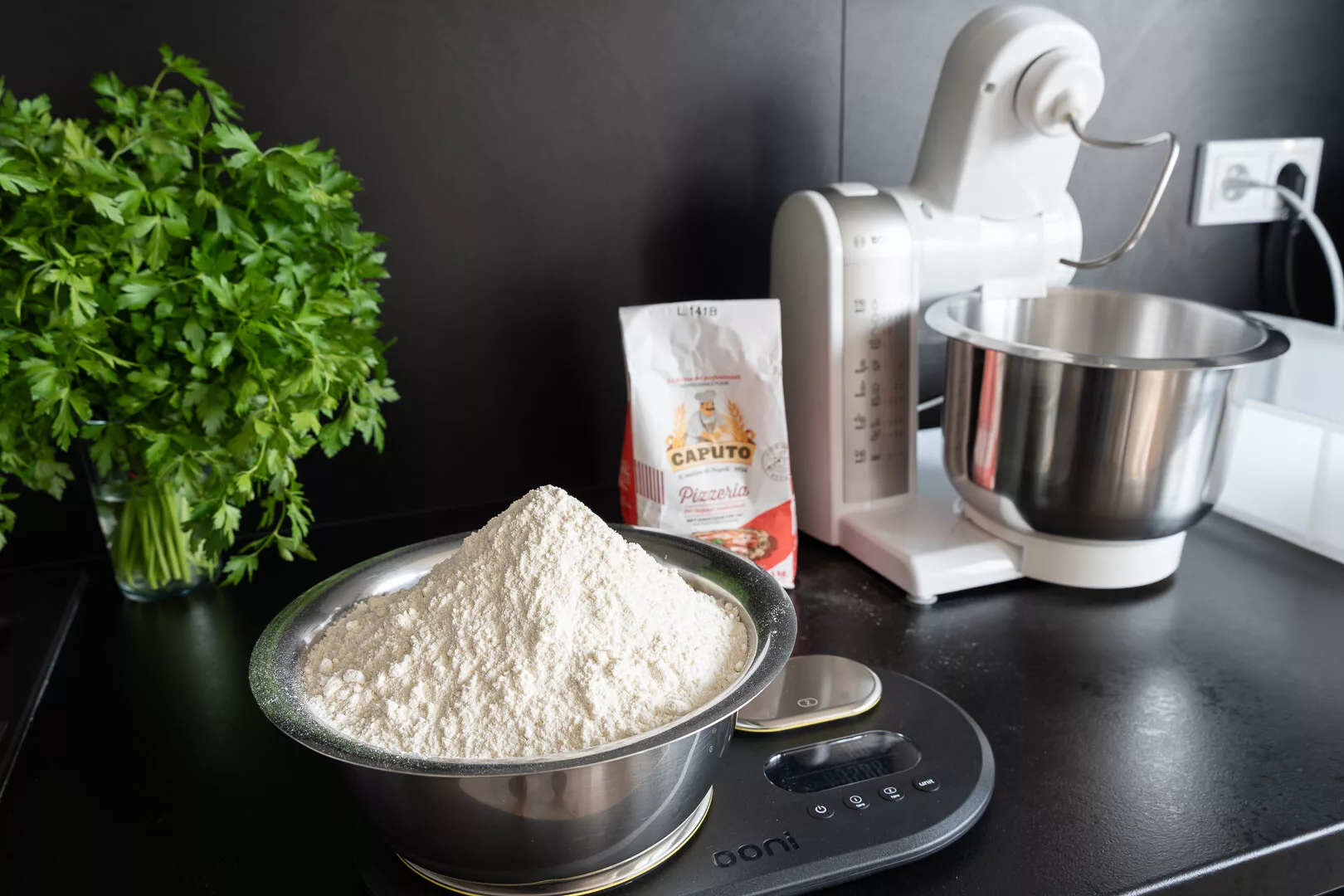 | Mehl | Tipo 00 oder eine Mischung mit Manitoba-Mehl. Fein vermahlen, mit optimalem Klebergehalt (12,5–14 %) – für elastischen, luftigen Teig. Wir empfehlen Pizzemehle der neapolitanischen Mühle Caputo Pizzeria oder Cuoco. |
